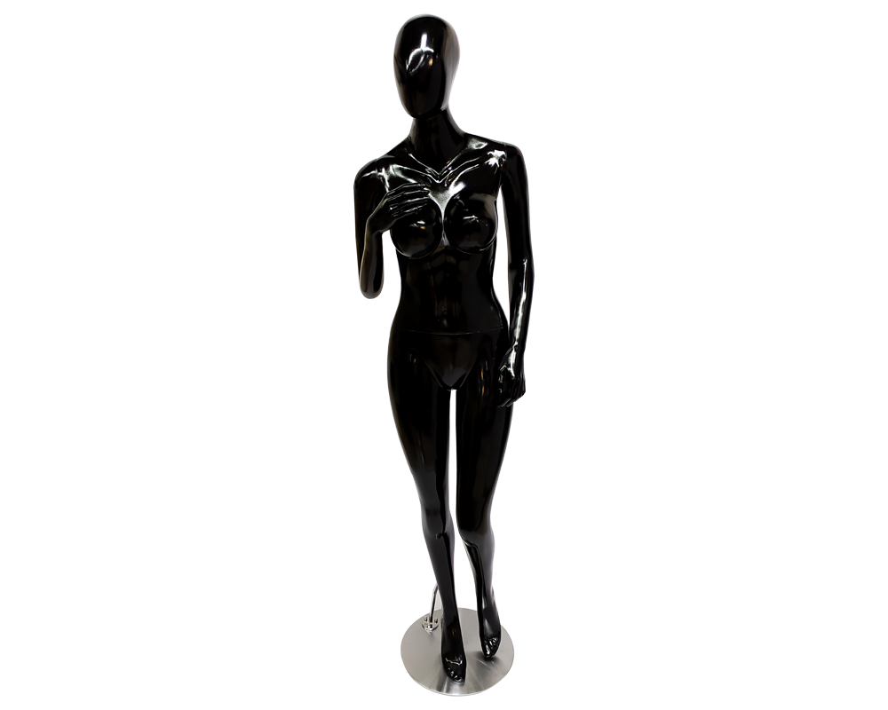 Descripción: Maniquí fabricado con cuatro capas de fibra de vidrio, brazos desmontables, terminación en pintura líquida, base en acero inoxidable.